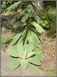 De plant die nu misschien wel het meest opvalt in de kerktuin is de Koningskaars of Toorts (Verbascum thapsus). Wel twee meter hoog bloeit hij al vanaf juni met zachtgele bloemen, die aantrekkelijk zijn voor bijen en vlinders. De plant heeft fluweelzacht lichtgrijs blad en houdt, gelukkig voor ons, van droge grond. Het is een tweejarige plant, dat wil zeggen dat hij twee jaar leeft: het eerste jaar bloeit hij niet, dat gebeurt pas in het volgende jaar. Gelukkig zag ik aan de voet van onze toorts een rozet van zijn opvolger!