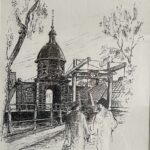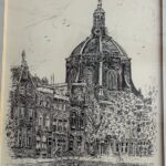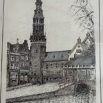 Graag tekende Kees kerken, markante gebouwen en molens met eindeloos veel geduld. De vier Leidse kerken uit deze expositie zijn betekenisvol uit het leven van mij en mijn man Jan : doop, belijdenis en trouwen. De andere pentekeningen uit deze expositie zijn bekende gebouwen uit Leiden, voor velen vast herkenbaar.