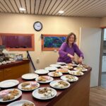 Er waren 11 jongeren die onder leiding van Jutta Harthoorn de lekkerste dingen hadden gemaakt (hartig en zoet) en die met grote inzet aan tafel de gesprekken leidden. Dat viel niet altijd mee, de koffieruimte bleek eigenlijk te klein voor het aantal mensen, waardoor je elkaar niet altijd zo goed kon verstaan. Zowel oud als jong hadden daar wat last van. Maar het mocht de pret niet drukken: in drie rondes werd er geanimeerd gesproken over het thema Hoop. Er waren in elke ronde, waarin je met nieuwe mensen aan tafel zat, een aantal vragen en citaten, zodat je kon kiezen waarover je in gesprek ging. Soms waren er grote verschillen in beleving tussen jong en oud, maar er waren ook overeenkomsten, bijvoorbeeld over muziek naar aanleiding van de vraag: welk lied geeft je hoop?